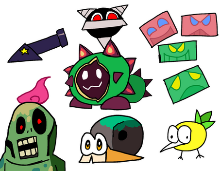 Bloatula (M&L: DT), Spike Creature (Yoshi Topsy-Turvy), Beta Flying Fish Ball (Luigi's Mansion).
