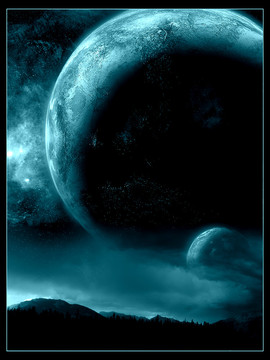 That's too good for me, infact beyond the level of skill I could ever anticipate in photomanipulation. I really like the semi-transparent moons, or planets, or whichever.
