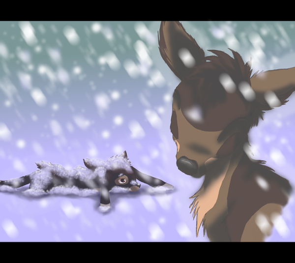 The injured winged wolf lay in the snow, the flurry of the oncoming blizzard clouding her vision more and more with every passing second. The snow felt like pin pricks as they hit her, causing her to shiver as the warmth began to leave her body, the snow she lay on turning a gradual dark red as the blood from her wound seeped away from her body. The snow, as it warmed on her body, melted to her fur, and the blood soaked ground added little warmth. Her body violently gave a shudder, as she lifted her head, her eyesight beginning to double, as she saw the figure of her wolf responsible in front of her. The brown male watched her, her blood soaking his mouth as he grinned insanely, his stare boring into her. With a quick flick of his tail, he growled, stepping toward her and crouching down so she could hear."Dear, dear Senka. How precious of you to let me go on. I am touched that you helped me back there, consider this my repayment" Malik spat, his voice smooth as silk. He backed away, widening his wings, and leaping into the air, letting the wind carry him away. Senka watched his retreating from with a weak snarl, her own wings beating the snow with little to no effect. She lay still in that moment, staring ahead. No one knew. No one knew where she was. This was the most challenging race in the world and 99% of the racers had made it back. But not her. This was it. Radio contact with Lightning had ceased days ago, ever since they had gone out of range. Oriana was miles away, Senka making sure she was safe. No doubt Oriana avoided this on coming blizzard. Senka had saved the lives of every racer. But her own. She knew in her deepest of hearts she shouldn't have trusted Malik. But now.... now it was too late. He really had brought the end to her, and she was alone, and cold. Lightning didn't know where she was. Neither did Oriana. Or Feyra. Kadesh. Plus. Minus. Chester. Zorru. And..... Shiva. Senka smiled at the thought of Shiva. She knew she would go beserk. She knew that Shiva would not stop until she found Senka. She would put an end to Malik for returning without her. But it would be much too late then. Senka's head lay more to the side, as she felt the heat leave her body slowly and felt herself getting weaker and weaker. Senka whined, watching her own blood stain the snow, getting further and further away from her. She moved slightly. It was then she saw another figure appear, starting as a grey silhouette and then appearing as it got closer and closer.