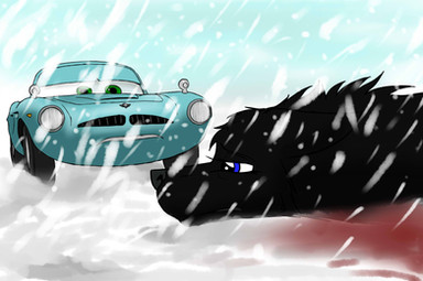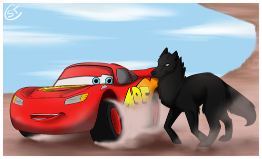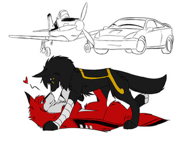 Basically, this is 's version of Dusty Crophopper as a wolf from Planes, and Senka, my wolf who is raised by Cars..... Dust has been turned INTO a Wolf, where Senka just sorta..... exists.