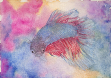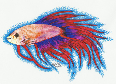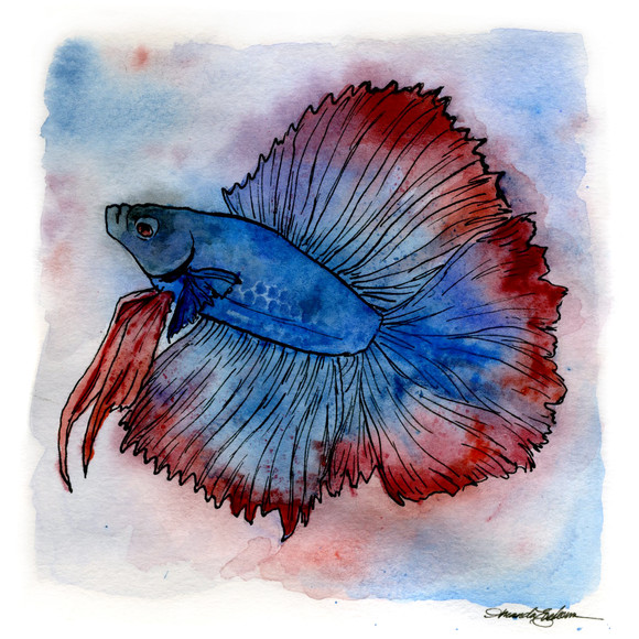 Pet portrait commission of the betta girl, Sunshine, for a commissioner off of fB.www.facebook.com/RedCometPetPoβ¦