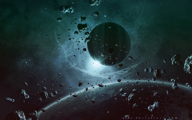 Here is my submission for the space-artists pack "The Edge of the Universe". Sorry I haven't gotten it up until now but here it is.I painted the asteroids, stars, planet, and light with my new tablet and it took boookooz (sp?) of time :tired: