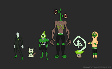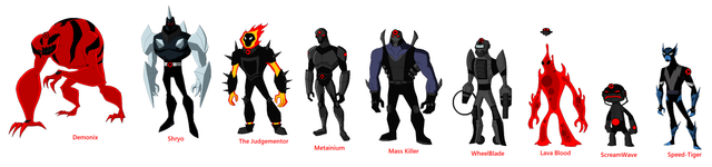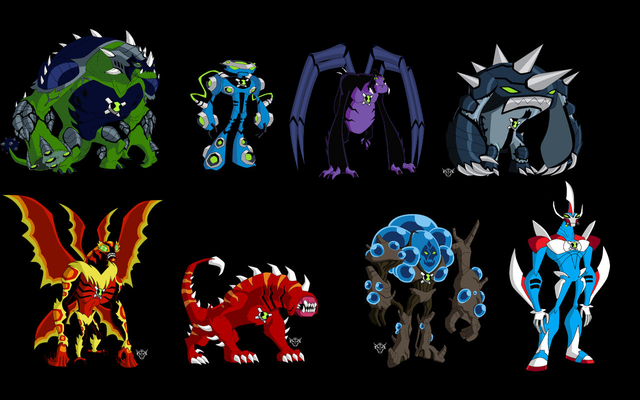 Kevin 11 (Dimension 32) alien collection (from top-left to bottom-right):