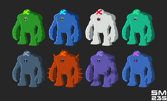 Ben 23, Albedo, Bad Ben, and Nega Ben variants of Humungoraptor.