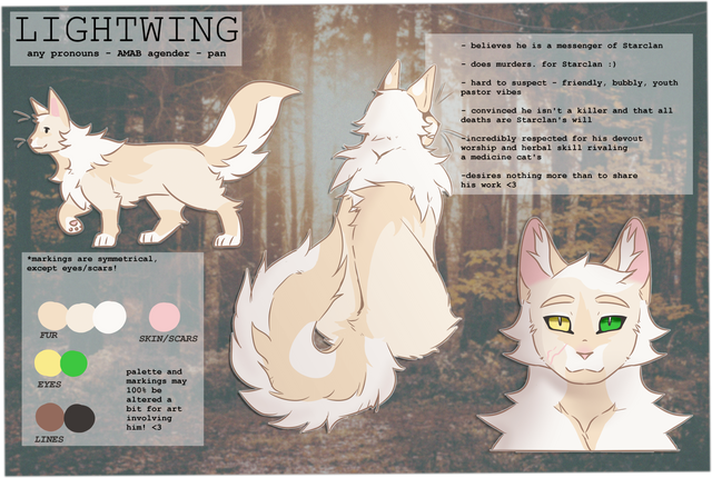Other: Was found by Elmclan as an abandoned kitten and was taken in. Some still give him trouble for his unknown origins but by now he's had many moons to sharpen his tongue.