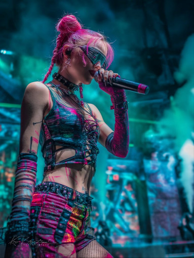 ChrisJr2518 - A futuristic drag queen with neon hair, cybernetic