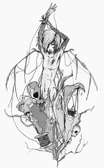 I drew it up-side-down! ...actually, I think I flipped my sketchbook up-side-down and then drew the face right-side-up then flipped the sketchbook right-side-up and drew the rest of the body up-side-down.