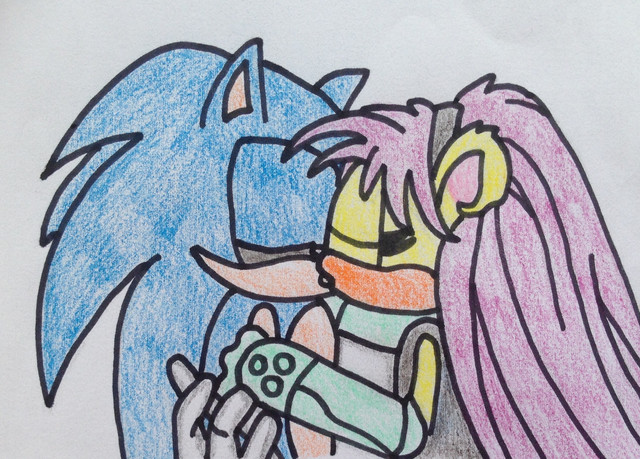 Another character of that first person shooter idea I had when I was some few years younger. This one is a female... elf thing with glowing pink eyes dressed like some cyborg from the Jetsons. Again, I was just learning to use circles to form characters.Done in mechanical pencil and colored in Photoshop.