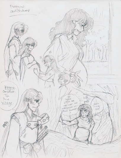 This was originally the only kind of pregnant Kagome that I was going to draw before convinced me of the contrary.This one is based on some edited official art that has been around the net for a while. Of course, it's meant to take place once Inu-Yasha and friend's quest is over and they can ask for a purifying wish to the jewel.