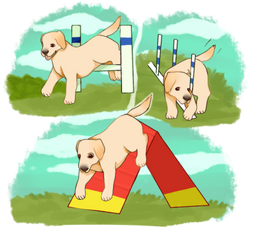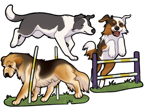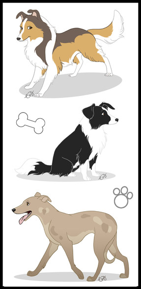 No need to comment on the horrible anatomy I noticed it once I got to the final line art stage and was too eager to colour to fix them. Sorry guys. A couple of photo references were used for Strider’s drawing (the red Border collie) as it was hard to get the twisting of the agility pose to look natural.