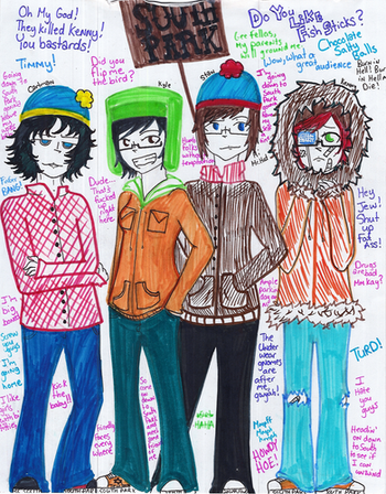 Mmmm... I particularly like Kyle in this drawing. Have to say though, Stan's expression reminds me of his emo phase. Love the proportions though. They look like actual fourth graders, which is very awesome for the style.