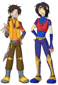 This is my first ever drawing without the lines!!! I'm quite proud of myself with this one(Her Pose: Remember, I have a running gag going where they're going through the motions of using their weapons, only to forget they have Odd's Laser arrows now.) Speed paint will be linked up soon!