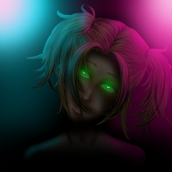 The colour scheme works well, giving it a nicely dramatic feel. The shading is also effective, especially on the neck - it's a bit messy on the chin and the hair, perhaps spend a bit more time tidying it up for a truly polished feel.