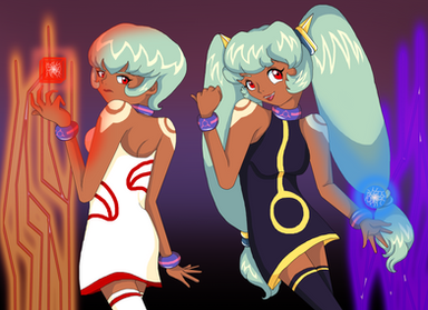 The girl on the right is the original Sari Sumdac from the show, I just made her a few years older and had some fun with her armor.