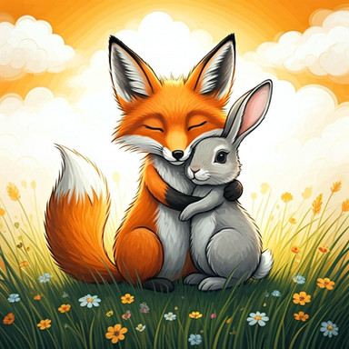 #bunny #cuddle #fluffy #fox #hug #rabbit #winter