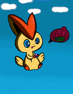 -has been victorious over the entire cake!Done during a short stream. Actually finished page 7 (meanie chu) a lot faster than I thought, so I told the people on said stream to give me a pokemon and someone said Victini..~