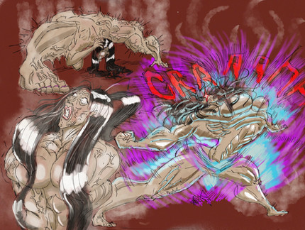 Dreyanna's screams brought Farah back to the surface, and she could feel her body healing as she continued to draw heat energy into herself. Her fractured bones re-fused stronger, her muscles swole, and she could feel a new power coursing through her veins - it was unlike any power she had ever felt, but she knew what it was; Drey had passed Zarna's gift to her, and the Val enzymes were evolving. "Damn you", Farah exclaimed, seeing what Drey's sacrifice had cost her, wishing instead it was her that lie wounded.