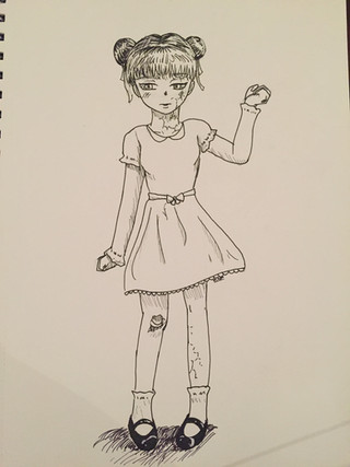 Well, this is odd. I haven't posted a piece of art in, what, 2-3 years? Thought I better, then.As you can see.... she looks completely different. She has choppy short hair and burn marks all over her right side. But that's alright. It gives her more character, I think.