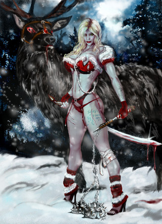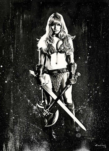 But if such a bodacious babearian deigns to use a zweihander of the finest toledo steel, how can she defile her prey at the same time? At least give her some longer lacquered talons for obviously inherent combat bonuses.