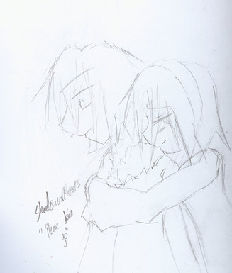 ^^ Awwww~~ This is soo cute! I love the position you have where his head is resting on her lap! Is she saying that to him? or is he saying that to her? ^^ most likey he's saying it. Guys are soo strange. I had a dream where Edward Elric from FMA was trapped in a jungle,escaped from wierd tribal ppl, flew to a windmil where his father was and said, "Father I don't care if you don't accept me as your son, or even your daughter on that matter! I only wish to help rebuild Dimascis!!" Then his father picked him up and cradled him in his arms. xDD then it turned into a Fire Emblem arena, but with Heartless surrounding the mill. -_- then somthing plain creepy happend. I was in the realm of sonic...and then it asked me if I wanted to have a poke'mon battle... Instead it showed me that I had 4 polygons, to rade in for either a umbreon, or a grodoun. o.o pretty wierd....I then found myself transported to my grannys backyard, which had jungle trees all inside it, and I saw a really buff tribe dude handing out cookies!!!