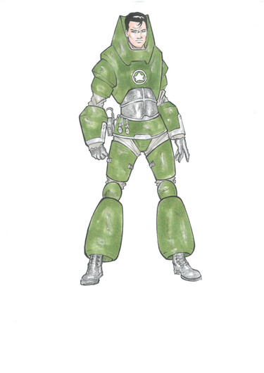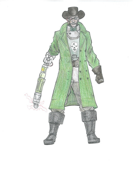 A fan idea for Fallout 4, a Gunner enemy as a cyborg. The idea being that it's a Power Armor frame fused with a human body for augmented strength and being able to do the long jumps without dying. The fusion core to keep the frame running is still there in the back with the spinal components. You have to be constantly on Buffout to maintain the physique for optimal usage of the cyborg parts though which leaves your mind addled.