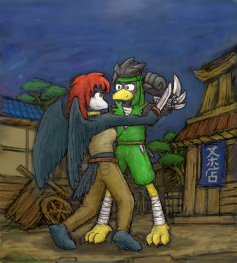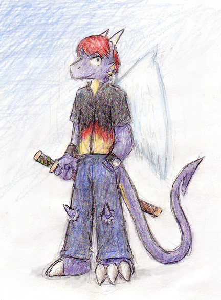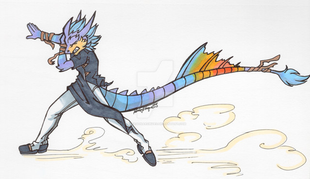 Huh...deviantart seems to be screwy. I couldn't get my description to show.Well, this is Gabriel, the dragon-otter character belonging to this awesome dude -> Would've made him block another character's attack, but that'd be absurdly hard. So now, he's blocking um...the wind! Hope you like it, Hunter!