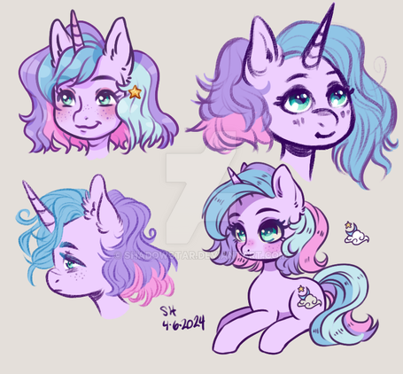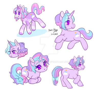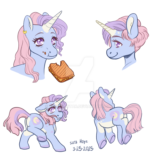As you can tell, I keep going back and forth between styles inspired by gen 1 and gen 4. I do like the last one I drew which was the gen 1 style the most. I'm also trying out different hairstyles, as you can see.I may name her Misty Moonbeam. Originally her name was going to be Dreamcatcher something and her cutie mark was going to be a dream catcher but I think I've moved on from that idea when I decided on her cutie mark being this.