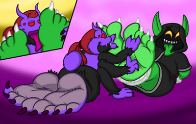 Poor Candi, her feet are by far her worst spot, but they're so adorable. So much so, im handeling this one personally. The Dark Tickler finally manifests 😜😈Unfortunately for her simply sliding claws along her soles is almost unbearable.