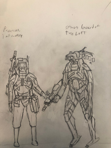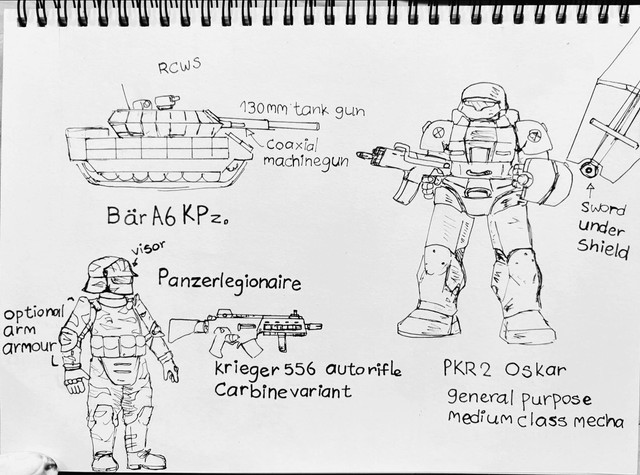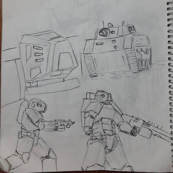 Drew some stuff. Might create a minor Terran faction in Emergence. Also another Tank. Might make it a Terran United Federation Tank.Related content