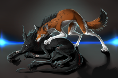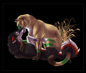 Fuuuuuuuuurrrrr, omg the fur o.o;; I really like how this turned out, especially the snarly expressions. Gotta love those. The background also turned out well. The lighting is great, and I don't think I really see anything to improve on either. Great work shaddie