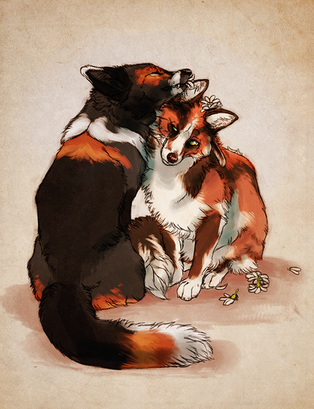 So here is a picture of me and his character, Valerian, being cuddly deer dorks to let all you furries know that we are now officially off the market EHEHEHeheh erm ok. Please visit Coonkun's much better version of our engagement announcement, featuring himself and my character Elodie, here!
