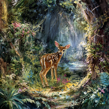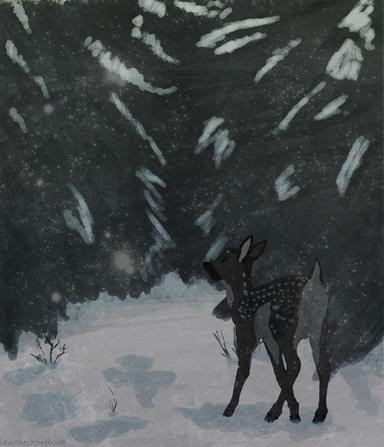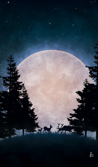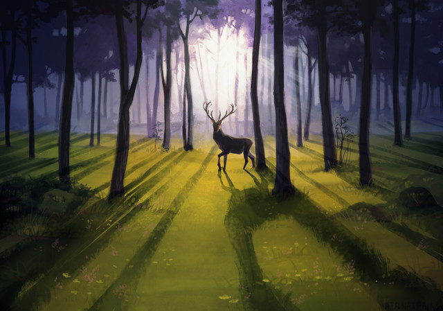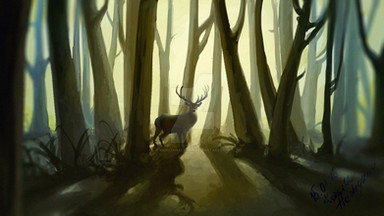 This is honestly my only suggestion- there is a black outline on the deer, which from a distance is barely noticeable, but was the factor that while works for illustration styles, does not exactly fit with the softness of the rest of the piece. However this is my own opinion, If you feel the need to play around with it by all means why not e.deviantart.net/emoticons/s/s⦠" width="15" height="15" alt="