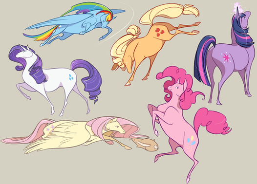 As weirded out as I am by seeing them with no manes, I love the anatomy and posing, especially for Pinkie and Rarity.
