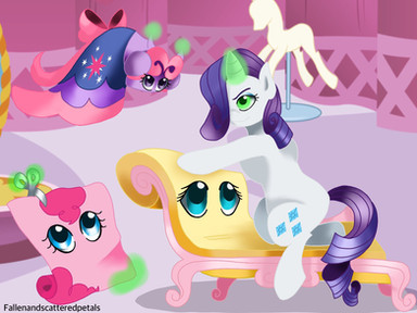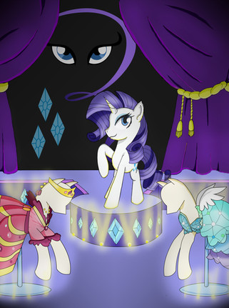 This was something I had been working on for Valentine's day, but I ran out of time because I made 2 batches of delicious red velvet cupcakes instead, and so this sat aside for a while.I don't know what is happening. I just wanted to draw frilly, lacy, corset saddle halter ponies. And who better to assist Earth Angel in the art of the dress than Rarity herself? Rarity's outfit design is credited to Lauren Faust herself ( fav.me/d4axe3o ), while Earth Angel's outfit is just something I made up. EA's hurr is all did too. I was going to make Rarity's hair something special as well, but let's be honest... Rarity's hair is already pretty dang fabulous.