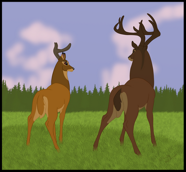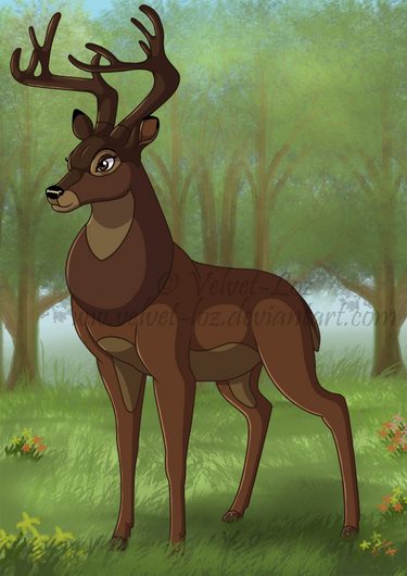 The finished commission for plushlover over on FA. He wanted his elderly stag character to be drawn in the Disney deer style, so I did it! I've never drawn Bambi style before so it was funCharacter (c) plushlover