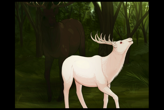 okay, i REALLY cant critique this one; it is gorgeous. i wish my crappy backgrounds looked so good! it is a bit dark, and the deer fades into the background in certain areas, but... i think that's kinda the point of the piece. so not a flaw at all.