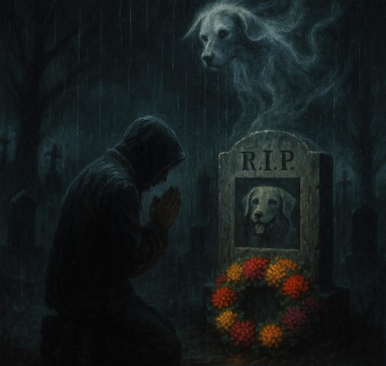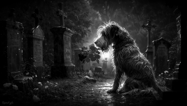 #animal #digitalart #dog #cemetery #photography #horror #photomanipulation #fog #portrait #musicinspired #yellowlabrador #restlessheart #faithfuldog