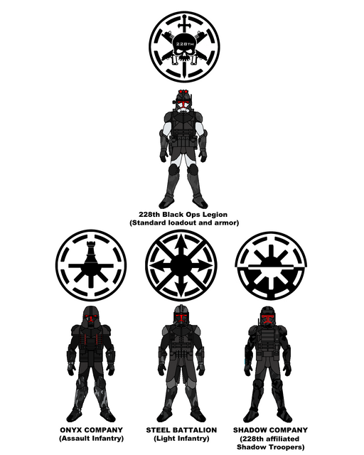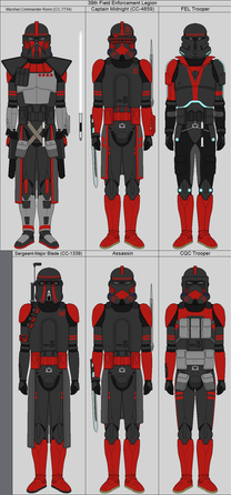 Dark Guards was a special unit that belonged to the Black Corps. This unit served several times as bodyguards for the Dark Jedis who worked for the Emperor.This unit was created by a Dark Jedi named Uts Arosh. Arosh created this unit as a replica of the Purge Troopers who will serve the Inquisitors and the Lord Vader.