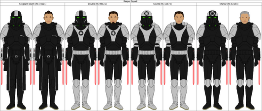 Shadow Squad was a squad consisting of nine storm commandos who were led by the clone Marshal Commander Shadow.These Storm Commandos were trained by the "Shadow" himselvef , the storm commandos they received heavy and cruel trainings, all these trainings they received were aimed at turning them into agile and silent killers.