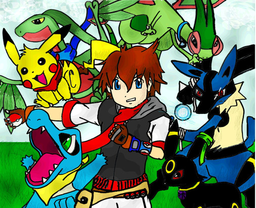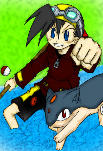 I like thew pictue, good pose. The only think I can't tell is if Chikorita is attatched to Johan's arm, or some sorta backpack.