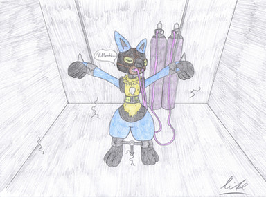 I knew within 2 seconds that RestrainedRaptor would definitely be loving this one, and myself as well! This is as strict as it gets! Hearing that little bell ringing would definitely be cute as she moves her tail, but with the audio sensor triggering shocks, I bet she'll learn to keep quite still. Seeing the graph in the background, it looks like she's already received a few stunners (and another coming up with the ringing bell)