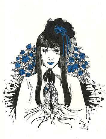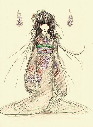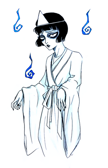 A cute little Yuurei (Japanese ghost woman), and her haunted lantern.I was experimenting with different styles, and am actually pretty happy with this. It's simple, but hey.