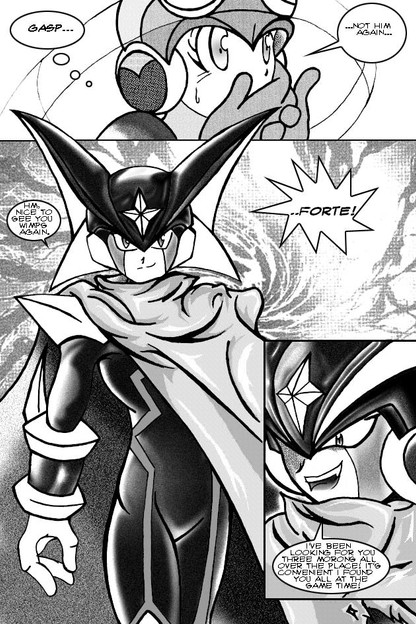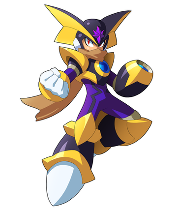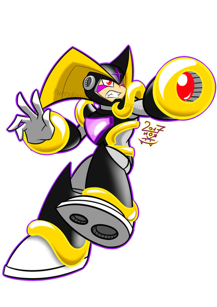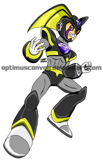 With that coloration, along wih those pointed crests on his helmet, he practically screams Bass. About as much as Beck screams Rockman, really. It's up to you to decide whether that's a good thing or a bad thing. As far as I'm concerned, it's not necessarily a bad thing.