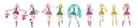 I only claim the mashing and recolouring of the Miku, Neru, Haku, Gumi and Lily models. Not the parts, just the mashing and recolouring.