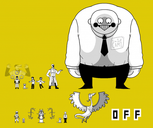 (Wait a moment to see the whole thing.)I played this game called OFF recently. It was quite the experience. The visuals, music, and especially the story were very bizarre in a very cool way. I'd recommend playing it if you're into strange, story driven games with some simple puzzles as well. It also has a very unique combat system, not to mention perhaps one of the strangest item naming conventions. It may seem different at first, but it actually changed what I think a videogame is capable of being.