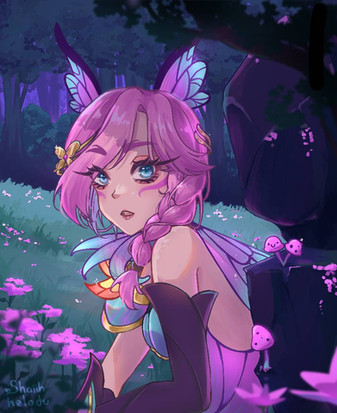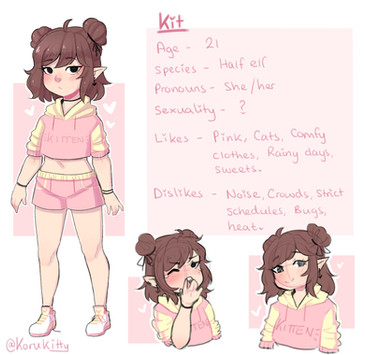 There isn't a lot to this character, is just me trying to balance the things I like. Pink, fantasy aesthetic and dresses. This is more of casual clothing, I'll definetly make her a costume that shows more her "magic" sideJust a general quiet happy demi-elf who can grow flowers in her head depending on her emotions.