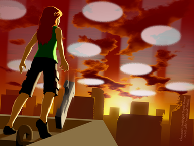 I like the way you portray movement with the figure although the right leg seems to be a little too straight for her to be stablizing herself while sliding. That doesn't make it any less beutiful though!