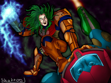 XD,samus while she was still green-haired,you don't see that very often.and the hair looks good like this, makes it look a lot more lively.FAV'D