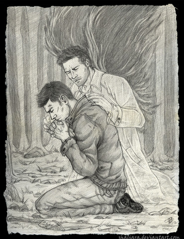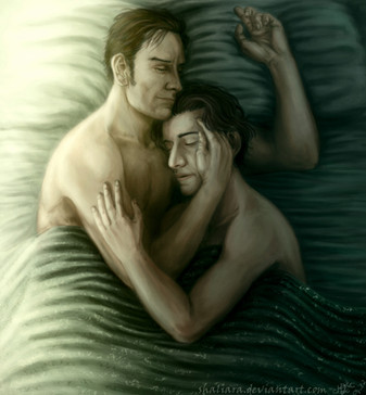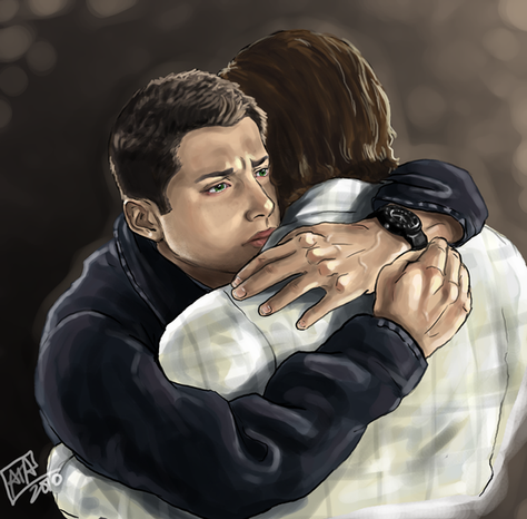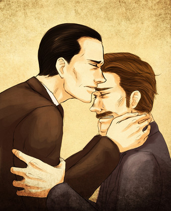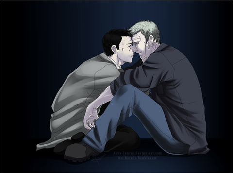 ;A; this is such an emotional piece! I really love the dark shadows everywhere, they really add to the angst. Erik looks so devastated, and I just love how Charles is trying to protect him, holding onto him like he's saying "it's okay to let go." So lovely. β₯