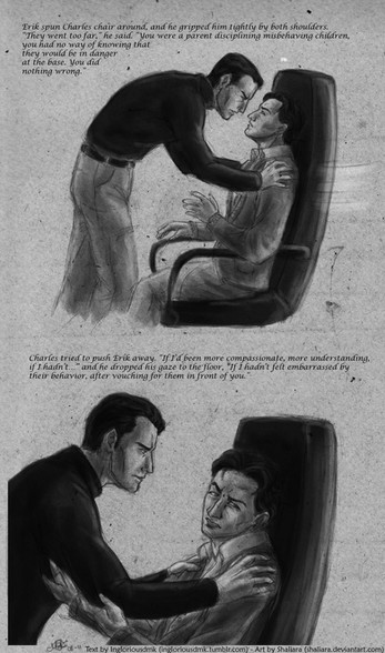 THIS IS LOVELY! I LOVE THE FACIAL EXPRESSIONS AND BODY LANGUAGE USED IN THIS,IT'S REALLY GOOD! NIIIIIIIIIIIIIIIICE ONE! PLEASE DO MORE OF CHARLES AND ERIK!